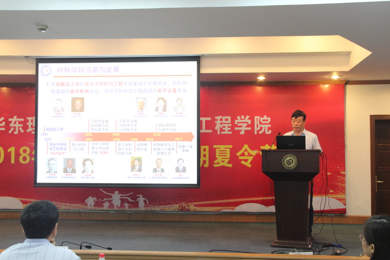 7月7日上午,材料学院第八届全国优秀大学生暑期夏令营开幕式在逸夫楼演讲厅举行,吸引了来自南京理工大学、北京化工大学、中国石油大学、东北林业大学、东华大学、上海大学等20余所高校的67名大学生参加。材料学院院长李春忠,党委书记唐颂超,副院长袁媛、林绍梁以及众多教授出席开幕式。