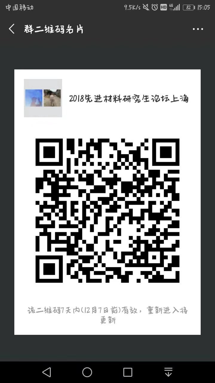 经2018年上海市先进材料研究生学术论坛专家组评审,参会名单见附件!获得参会的上海本地同学需扫码进微信群,没有入围同学不再一一电话通知,特别告知!