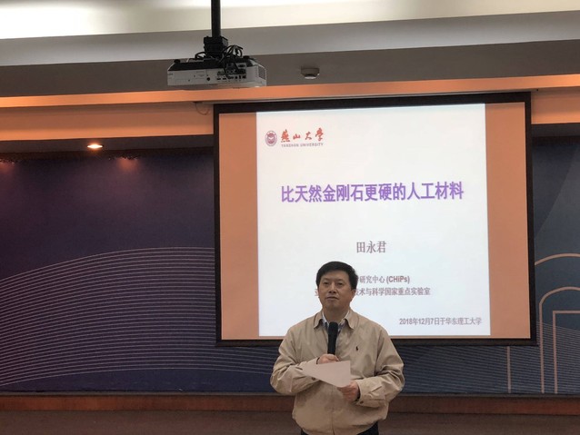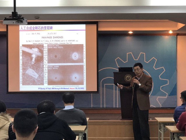 田永君教授受邀来校访问,并作了题为“比天然金刚石更硬的人工材料”的精彩报告。报告由副校长刘昌胜院士主持,材料学院副院长林绍梁教授、李欣欣教授,杨化桂教授等师生百余人参加了报告会。
