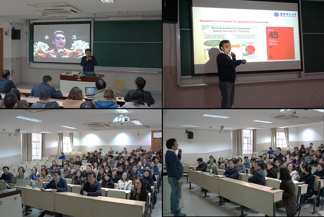 安全宣传会议在徐汇校区四教102室召开,学院党委书记唐颂超,副院长林绍梁(主持工作),及100多名教职工参加了本次会议。会议邀请了校安全办主任徐宏勇做实验室安全知识培训讲座。