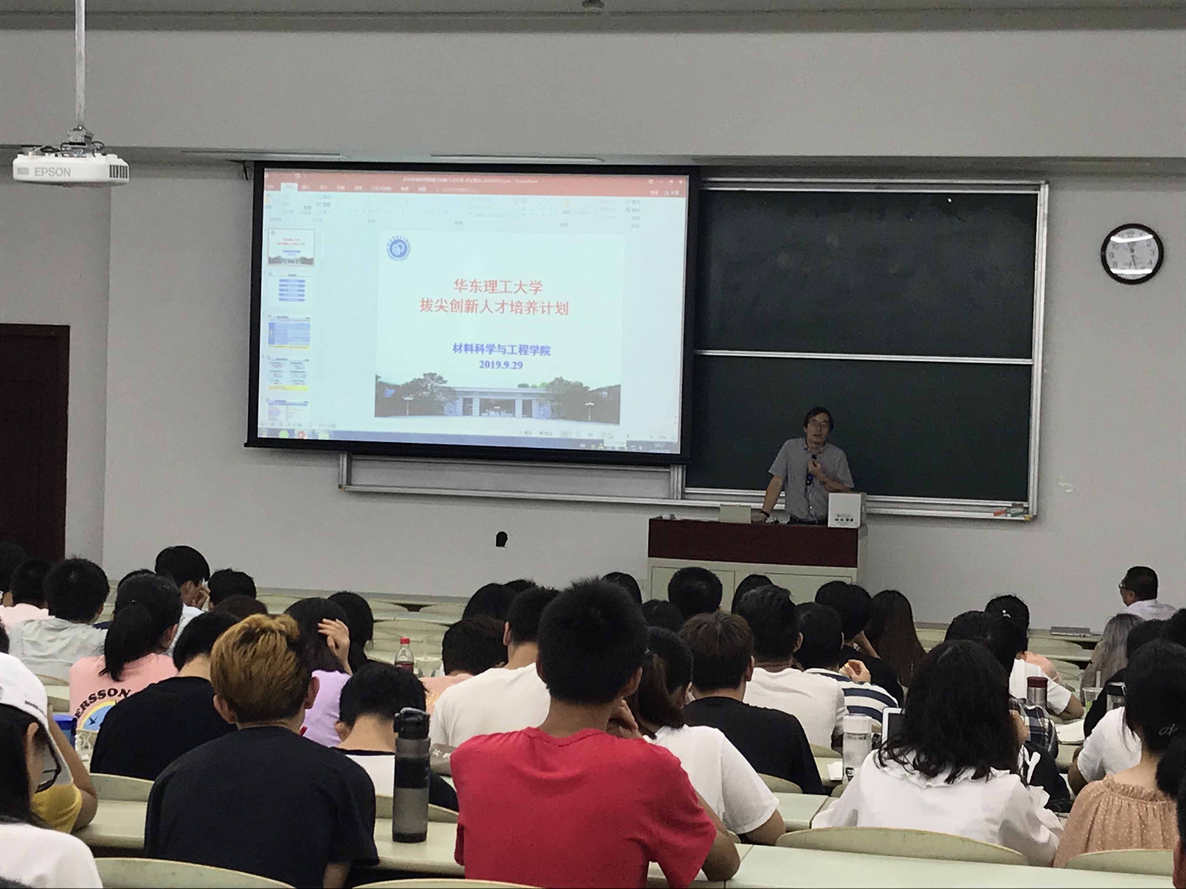 9月29日,材料学院“推免招生政策”及“2019年拔尖创新人才计划”宣讲会在奉贤校区B教100举行。本次宣讲会由副院长李欣欣主持,胡彦杰副院长与2018级全体本科生参加。
