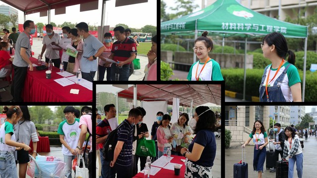 学院老师在咨询点为新生家长答疑解惑,并准备了“致新生家长的一封信”,以便让家长了解学生在校的学习生活情况等。新生报到处,有学生志愿者热情周到的服务,接过新生手中的行囊,指引办理报到手续,欢迎他们加入材料学院大家庭。