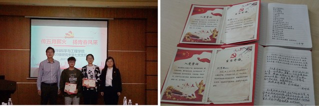 随后,支部五位党员同学分别以“弘扬劳模精神,践行责任担当”、“不忘初心跟党走,青春奋进新时代”、“坚持科教兴国战略,走向伟大复兴道路”、“点亮新能源之光,助力经济高质量发展”、“传承五四精神,笃行报国之志”为主题,分享了“党史上的红五月”,并结合自身经历分享了学习感悟。在场学生纷纷表示,在建党百年之际,既要不忘初心、牢记使命,更应砥砺奋斗、继往开来,勇担时代责任。接着,党支部为五月过“政治生日”的许慧敏、杨博文两位同学举办了“政治生日”庆祝活动。党委书记袁媛和院长林绍梁为他们颁发“政治生日”礼物——定制的学习强国笔记本和政治生日贺卡,支部书记储明宇朗读了支部党员手写在笔记本上的“政治生日”祝词,现场严肃活泼,气氛热烈。