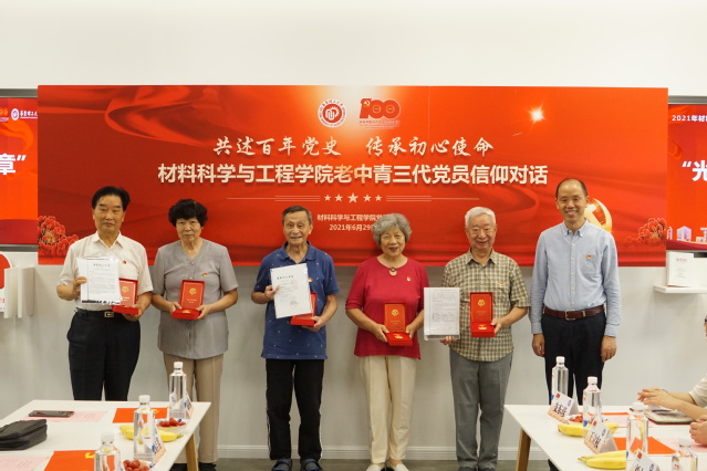 最后,袁媛作活动总结发言,代表学院党委向所有获得纪念章和“政治生日”贺卡的党员同志表示热烈祝贺。她表示颁发“光荣在党50年”纪念章和“政治生日”贺卡是学院党委庆祝建党100周年系列活动的重要组成部分。从2008年首次举办“政治生日”至今,学院党委已经为党员教师过了13次“政治生日”,共计241人次享受到了“寿星”的待遇。给党员过“政治生日”,已经成为材料学院党委加强基层党组织凝聚力建设的一个长效机制。在学院深入推动党史学习教育过程中,通过老中青三代党员的交流分享,希望我们每位教师党员能铭记党恩,听党指挥,永远跟党走,传承华理人“勤奋求实、励志明德”的拼搏精神,主动对接国家重大战略需求,着力解决材料卡脖子技术难题,以优异成绩向建党百年献礼。