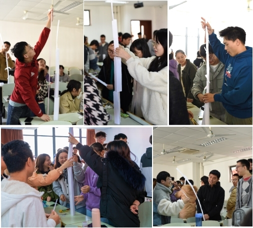 心理委员孙铭哲向同学们介绍了两个破冰小游戏:“自我介绍接龙”和“纸建筑比拼”,现场气氛十分热烈,同学们通过破冰小游戏增加了相互之间的熟悉度。