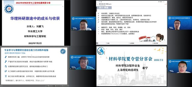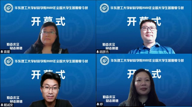 7月2日上午,全体营员相聚“云端”,共同参加了夏令营开幕式。材料学院党委书记袁媛,党委副书记戴诚安,副院长胡彦杰,党政办公室主任顾婷及学院研究生办公室老师等出席开幕式。开幕式由胡彦杰主持。
