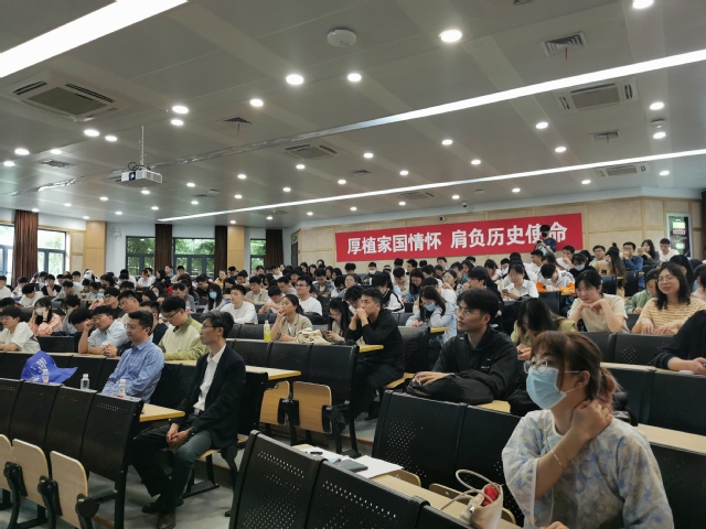 保卫处段凯洋主讲,学院党委副书记戴诚安、徐汇校区全体研究生班长、党支部书记、心理委员、学生党员、入党积极分子等200多名研究生参加。研究生辅导员李晶主持。