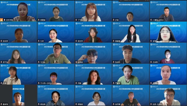 2023年第十三届全国大学生暑期夏令营盛大开营,来自全国五十余所高校的83名优秀大学生汇聚一堂,共享一场知识与成长的盛宴。夏令营开营仪式在网络云端召开,材料学院党委书记袁媛,党委副书记兼纪委书记苏建玲,副院长胡彦杰,党政办公室主任顾婷及学院研究生办公室老师出席开营仪式。开营仪式由胡彦杰主持。