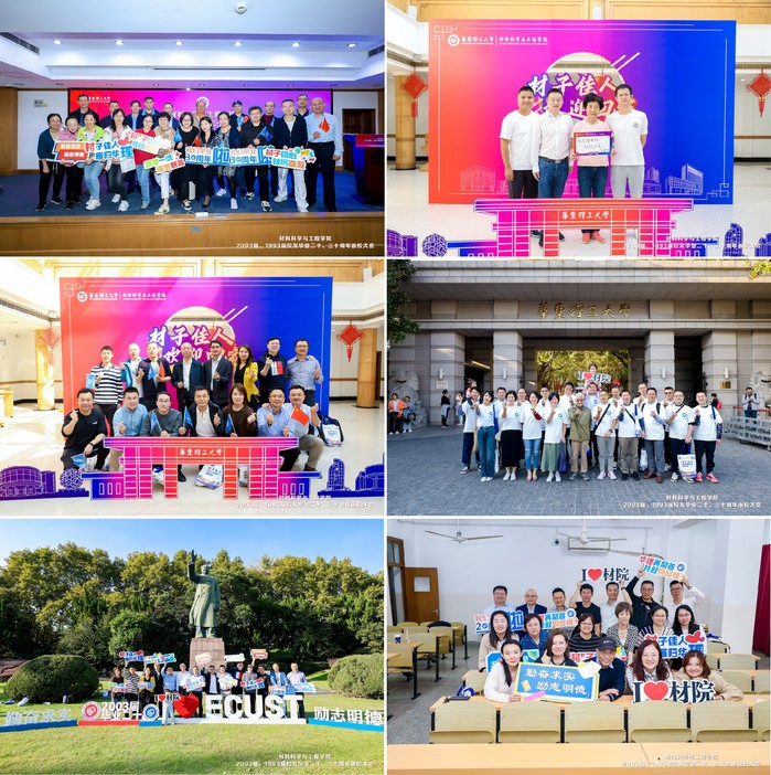 建校71周年,材料科学与工程学院在逸夫楼演讲厅举行1993届、2003届校友毕业30周年、20周年秩年返校活动,近150名校友从世界各地回到华理,相聚一堂,共庆母校生日,共叙师友情谊。校党委常委、副校长朱为宏,两届学生的教师代表陈国荣、徐佩弦、席士英、万胜男、王耀先、朱源泰,材料学院党委书记袁媛、党委副书记苏建玲、戴诚安,党政办公室教师,学生志愿者们一同热情接待。活动由戴诚安主持。