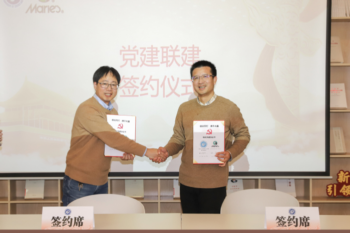 会上,上海马利画材股份有限公司党支部书记、董事长蒋熙洲与材料学院复合材料党支部书记章圣苗签署了党建联建协议,提升双方基层党建工作水平和合作质效,促进党建业务融合。