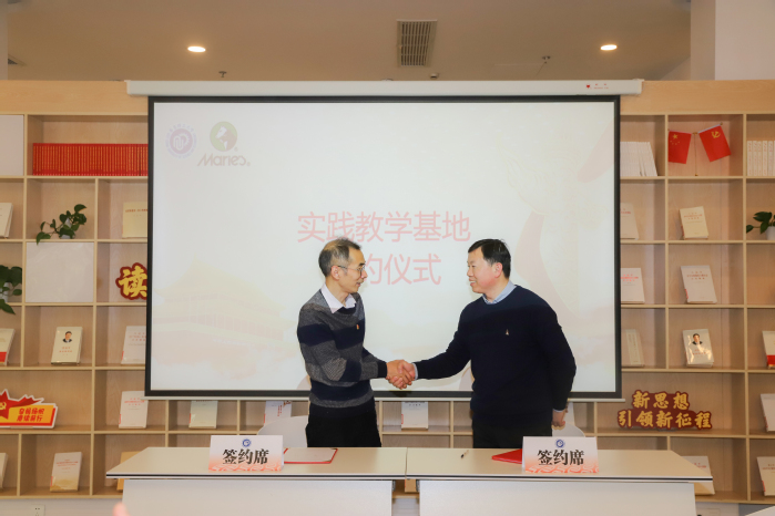 上海马利画材股份有限公司总经理闫加伟和材料学院副院长顾金楼代表双方签署了实践教学基地合作协议。