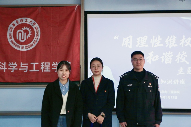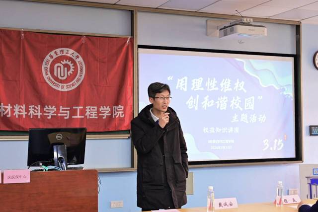为进一步加大校园防诈骗宣传力度,增强师生法治观念,普及反诈骗知识,维护学生切身利益,全力打造平安校园,材料学院以“3·15”国际消费者权益日为契机,于2024年3月12日下午在奉贤校区C203举办“用理性维权,创和谐校园”专题讲座。本次讲座特别邀请上海市奉贤区医保中心顾焱老师和高校派出所张志荣警官作主题分享,学院党委副书记戴诚安、团委书记张雪薇以及80余名本科生参加本次活动。