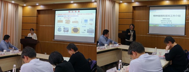 随后,博士后彭玉和曾惠丹教授分别以“新型钙钛矿光电子材料研究成果”“特种玻璃和浆料工作介绍”为题作了汇报,双方针对研究内容进行了深入交流讨论。会后,与会人员一同参观了材料国家级实验教学示范中心。
