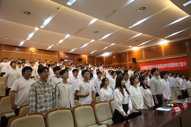 在奉贤校区敬贤堂举行了“赓续红色血脉 传承奋进力量”纪念五四运动105周年表彰大会暨新团员入团仪式。材料学院团委书记张雪薇、团委副书记周翀以及团员青年代表共150余人出席本次活动。
