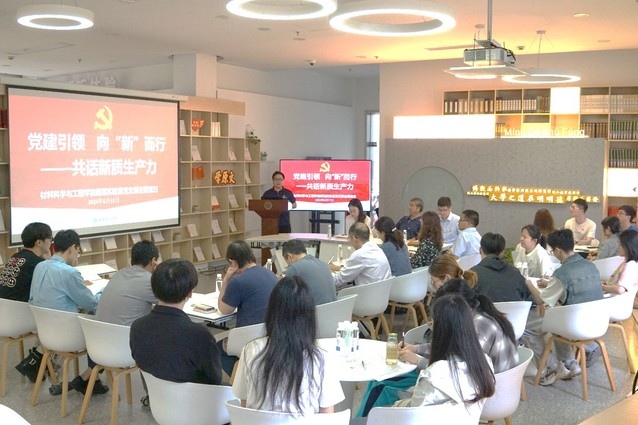 材料学院党委书记袁媛在总结发言中谈到,这次主题党日是党支部发挥引领服务作用,促进党建业务融合的一次生动体现,通过集中领学、案例分享、座谈交流等形式,让大家对新质生产力有了更加系统的理解,对于如何着眼于自身工作实际,助力形成教育、科技、人才的良性循环,如何为发展新质生产力注入有效动能有了更加深入地思考。希望党支部能够持续推动党纪学习教育走深走实,继续深化党支部引领和服务功能,强化模范作用发挥,以高质量的基层党建推动学院事业高质量发展,助力教育强国建设。