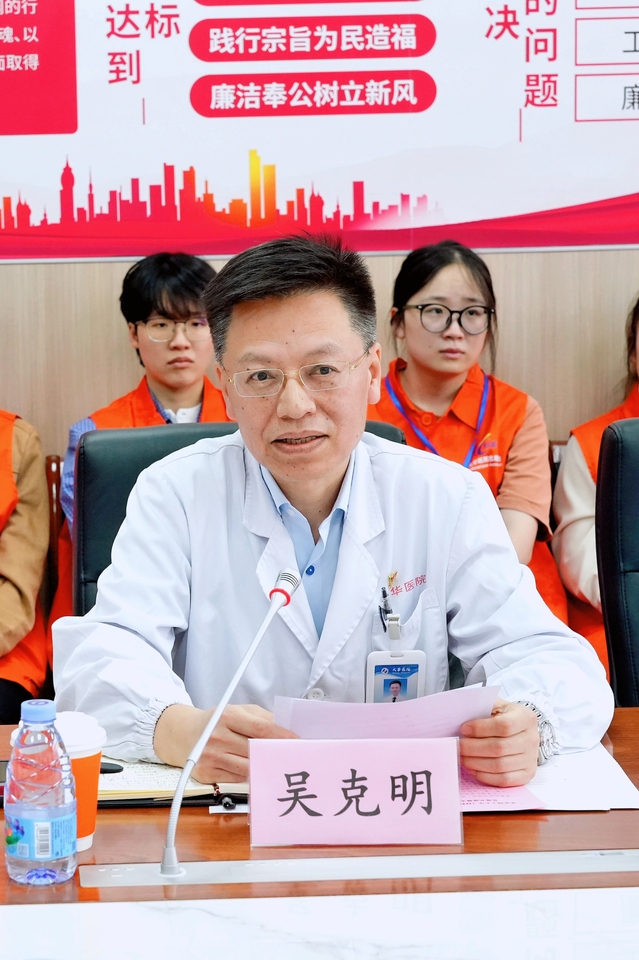 吴克明代表大华医院对材料学院师生表示热烈欢迎,并介绍了大华医院基本情况,希望未来双方能够增进了解、深入合作,共强党建,共谋发展,共同探索党建工作新思路。