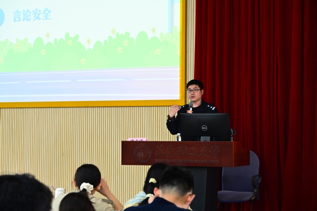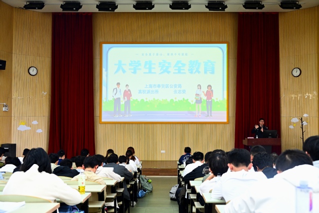 特别邀请上海市奉贤区公安局高校派出所张志荣警官,为学院2024级学生开展了一场主题为“安全护航·青春启航”的专题讲座。讲座在奉贤校区A200教室举行,学院300余名师生参与。