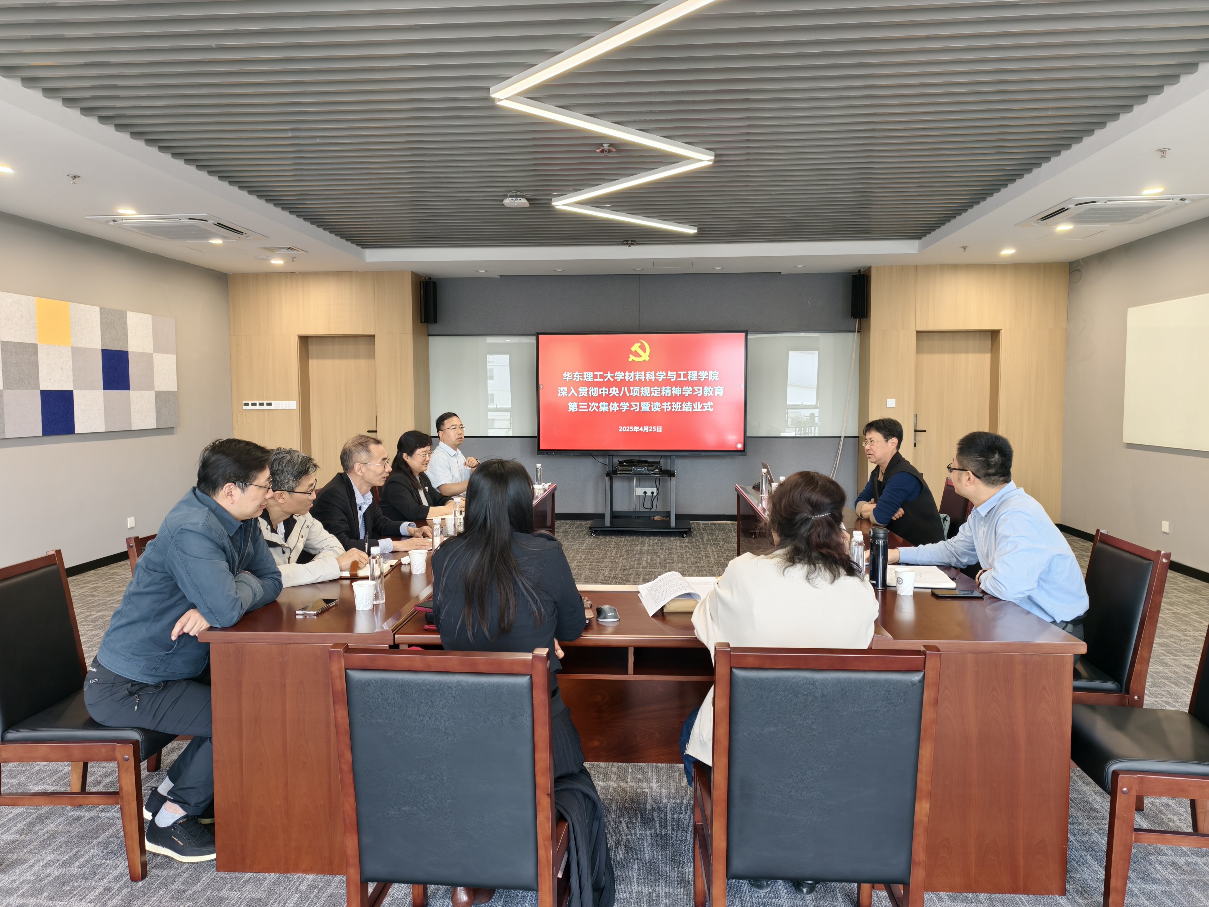 4月25日,材料学院深入贯彻中央八项规定精神学习教育第三次集体学习暨读书班结业式在先进材料大楼524会议室举行。材料学院党委书记袁媛主持会议并讲话,学院党政领导班子成员、党委委员、纪委委员、专职组织员出席会议。