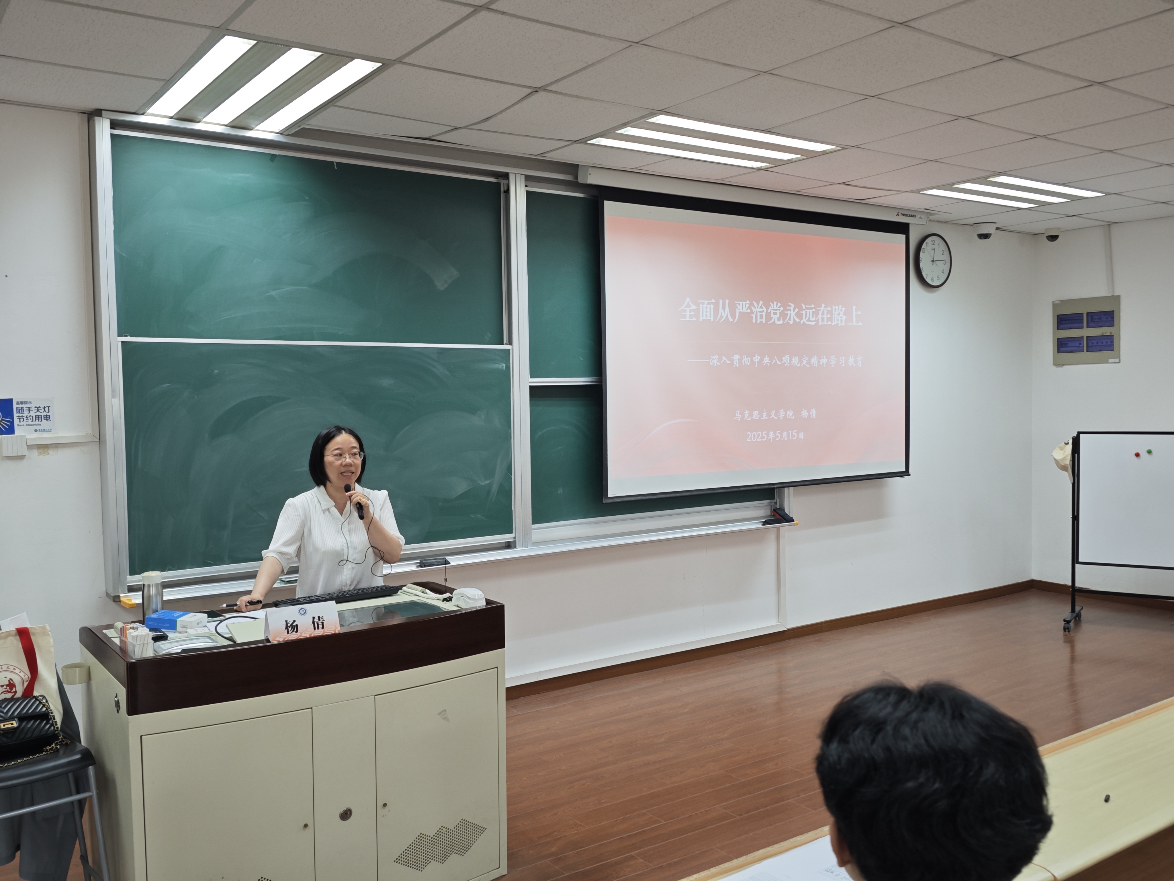 杨倩系统梳理了党的作风建设的历次学习教育活动,深入剖析了反腐败典型案例,阐释了中央八项规定精神的核心要义,强调同学们要弘扬自我革命精神,坚持党的领导,维护党中央权威和集中统一领导,用习近平新时代中国特色社会主义思想武装头脑,以实际行动争取早日加入中国共产党,投身于共产主义事业。
