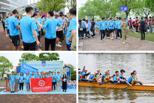 材料学院1988-2020级近30名校友加入比赛队伍,带着家属、朋友相聚龙舟盛会,组成了“材子佳人”龙舟队。学院党政办主任顾婷,学院教师朱沙医、王玥、王安琪、佘蕴芮、学生志愿者及校友家属为参赛队伍加油助威。