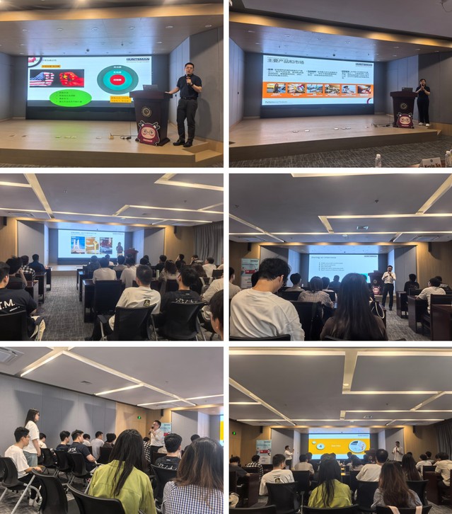 刘荣鹏以“复合材料行业的创新与挑战”为主题,结合亨斯迈在新能源、汽车轻量化等领域的实际案例,剖析了行业技术发展趋势及人才需求,鼓励研究生在不确定性的大环境中更要修炼好内功。张璟瑛从自身职业经历出发,分享了从校园到职场的转型心得,强调“主动学习、团队协作与问题解决能力”是技术岗位的成长关键。赵庆云介绍了公司差异化的聚氨酯、功能产品、先进材料,集团业务发展历程以及园区的多样化活动,推介了2025年公司实习生计划。徐晓超作了“Preparing for an Effective Interview”的求职面试讲座,分享了求职面试过程中的相关技巧,并从“目标企业和岗位、经历和简历、面试前、面试中、面试后”五个方面一一阐述了面试注意事项,建议可以通过STARR模型锻炼面试求职能力。