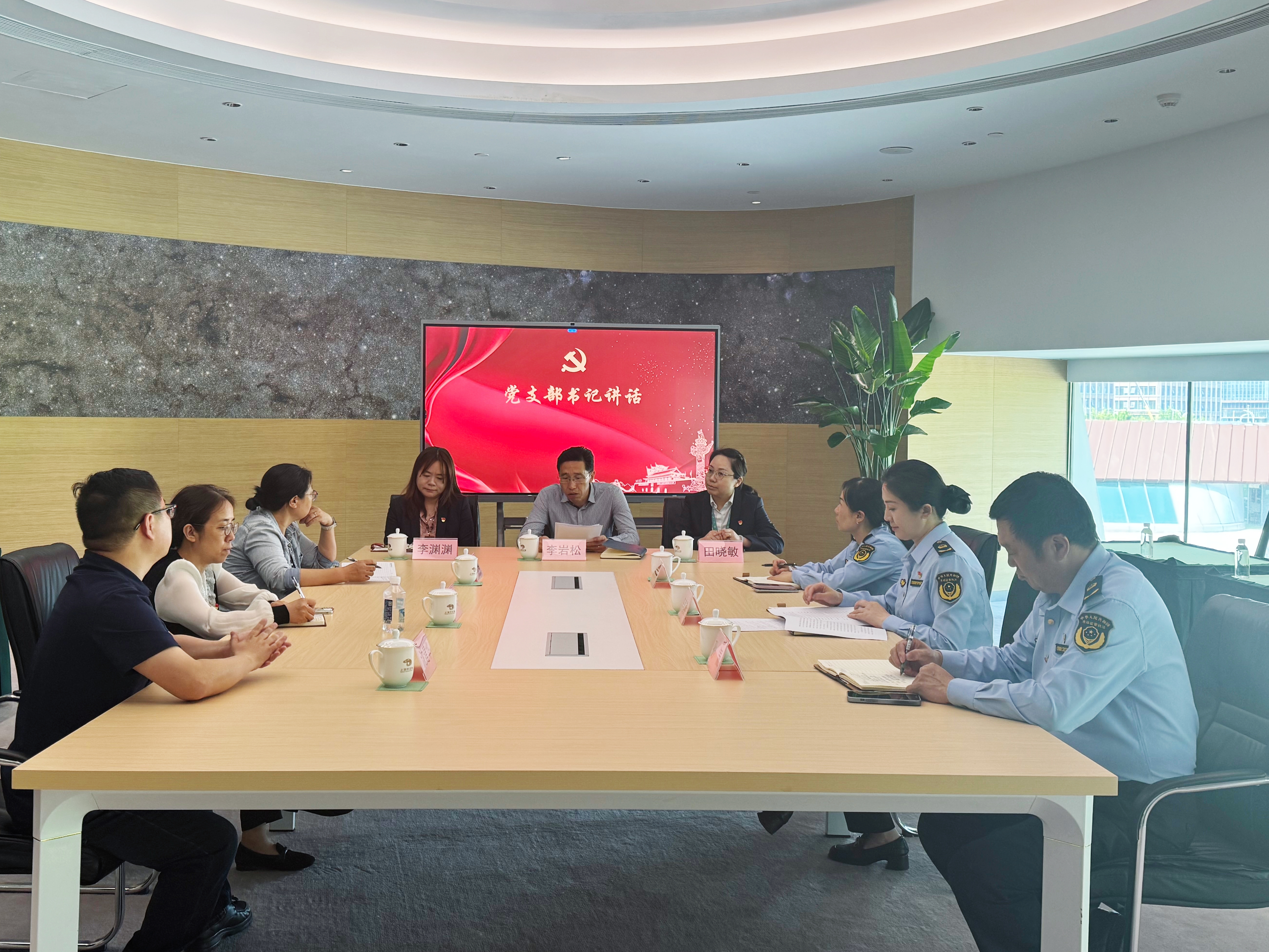 李岩松致欢迎词,并对天文馆的建设规模、技术赋能、党支部特色工作进行介绍,希望各党支部后续在科创竞赛、队伍建设等方面加强交流。李春燕就南汇新城的基本规模、监管所部门情况、日常工作职责等进行介绍,重点交流了党支部在“党建+监管”方面的特色工作。张玲就学校、学院的发展历程、党支部基本情况、支部特色工作等内容进行介绍,还就后续各支部间可深入开展合作的领域进行交流。杨晓玲分享在建设服务型党支部过程中的工作体会。