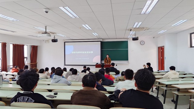 的孙恒学长、即将入职的张沈睿学姐作为分享嘉宾,并邀请刘学良老师、张良柱老师进行学业规划指导。活动以“学长学姐面对面”的朋辈交流模式,围绕考研择校、初试复试、保研流程、研究生生活及求职经验等核心话题,为材院学子提供全链条生涯规划指导。现场互动热烈,反响良好。