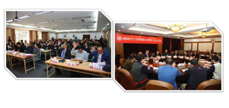 大会表决通过了《材料科学与工程学院校友会章程(草案)》,选举产生了20名理事。随后,当选理事在逸夫楼第一会议室召开第二届理事会一次会议,推举南策文、俞大鹏为名誉理事长,选举刘昌胜为理事长,宋力昕、王锦山、唐颂超为副理事长,戴诚安为秘书长。