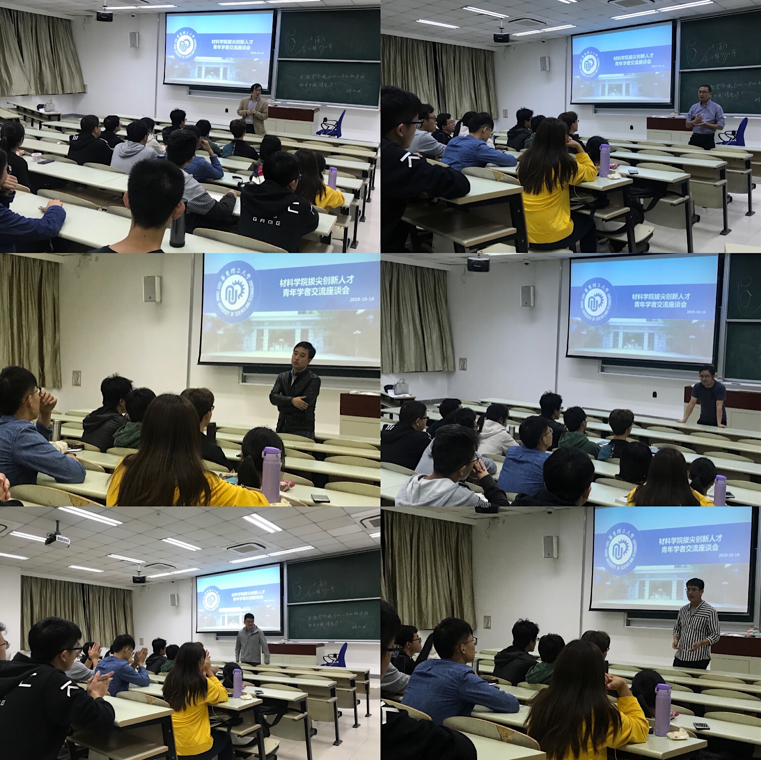 为扎实做好“2019年拔尖创新人才计划”选拔工作,材料学院于10月16日在奉贤校区A教106面向本科生举办“青年学者交流座谈会”。本次座谈会邀请到材料学院侯宇副教授、王立权副教授、刘鹏飞老师及2015级硕博连读生张浩轩作为师生代表,分享在华理的成长、成才经历。材料学院副院长李欣欣、胡彦杰参加会议,活动由李欣欣主持。