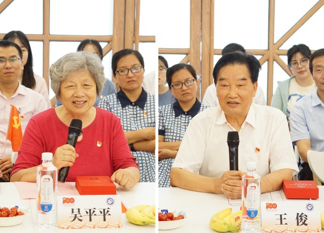会上,王俊、张启芳老师夫妇还为大家展示了他们获得的两枚极其珍贵的纪念勋章。分别是2019年获得的“庆祝中华人民共和国成立70周年”纪念章和1996年获得的中国航天奖,这两枚奖章是对两位老先生科研工作的最大褒奖。捧着沉甸甸的奖章,两位老教师动情地表示“为国、为党奋斗,祖国不会忘记,人民不会忘记你”。
