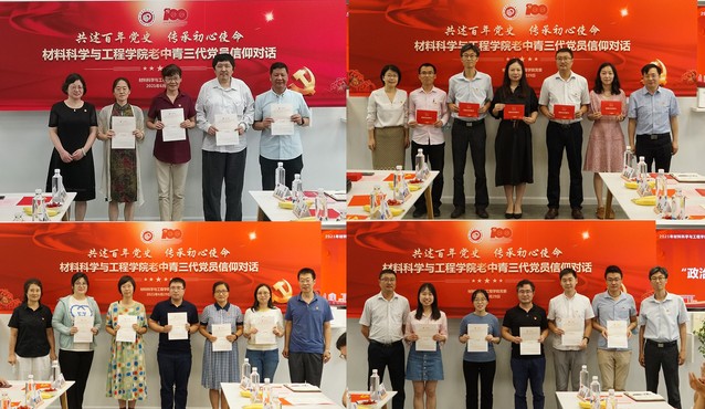 为热烈庆祝中国共产党成立100周年,扎实推进党史学习教育,讴歌党的光辉历史,致敬历代材料人一路同行的拼搏历程,传承老一代党员教师的初心使命,6月29日上午,材料学院一场老中青三代党员信仰对话在陇上书店文化空间-党建服务中心隆重举行。校党委副书记陈麒、党委宣传部部长夏江雯、档案馆馆长王惠文、党委教师工作部副部长张雪芹、党委组织部专职组织员徐永桢、材料学院党政领导班子成员、学院党龄50周年退休教师代表、“政治生日”教师代表等参加会议。会议由学院党委副书记、院长林绍梁主持。