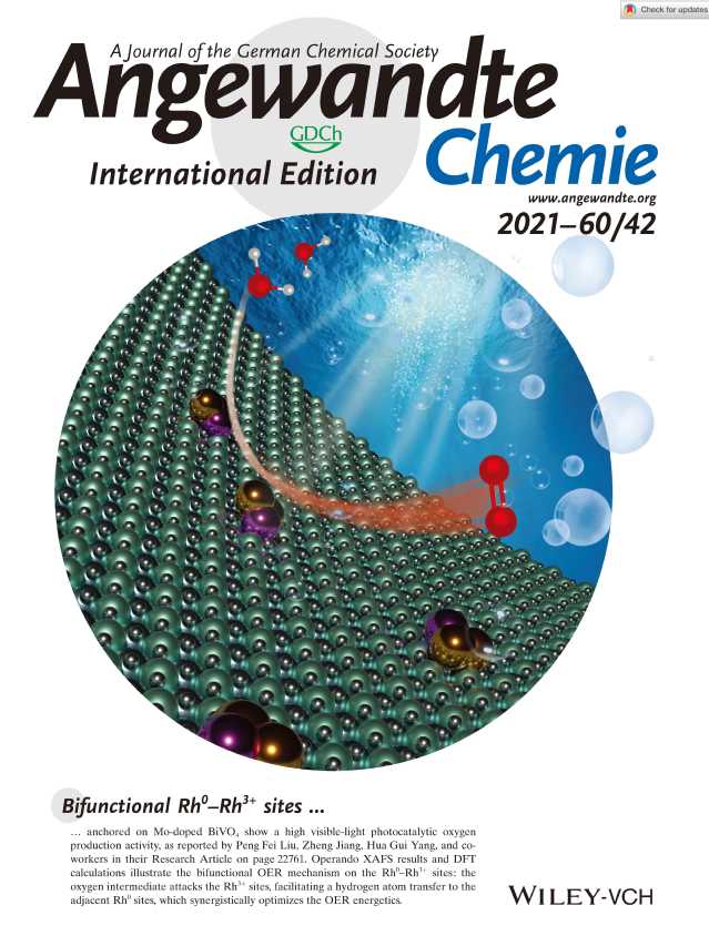 近日,国际知名学术期刊《Angew. Chem. Int. Ed.》以“Boosting Photocatalytic Water Oxidation Over Bifunctional Rh0-Rh3+ Sites”为题,在线报道了我校材料科学与工程学院清洁能源材料与器件团队在人工光合成领域的最新研究成果,并以内封面文章的方式重点报道。