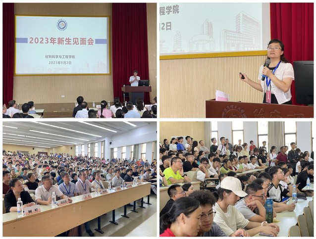 会上,袁媛代表学院致辞,欢迎新生加入材料学院大家庭,随后以“勤奋求实,励志明德,携手开启人生新篇章”为题,结合大学生活,为新生上第一堂思政课。她从历史沿革、人才培养等方面介绍了学校概况,并重点就学院历史沿革、师资力量、国际声誉、人才培养、科学研究、合作交流等方面进行了介绍。对于如何读好大学,她提出了五点期望:角色转变、认识大学、了解学科、明确目标、笃志而行。戴诚安通过典型案例,从人身财产安全、宿舍安全等方面强化新生的安全意识。