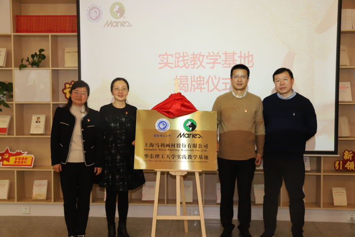 我校校友与发展联络处副处长王芝眉、材料学院党委书记袁媛、上海马利画材股份有限公司董事长蒋熙洲以及总经理闫加伟共同为实践教学基地揭牌,此次合作标志着双方将正式建立起长期稳定的合作关系,推动产教融合深入开展。