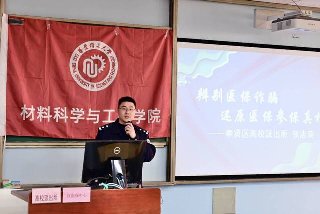 为进一步加大校园防诈骗宣传力度,增强师生法治观念,普及反诈骗知识,维护学生切身利益,全力打造平安校园,材料学院以“3·15”国际消费者权益日为契机,于2024年3月12日下午在奉贤校区C203举办“用理性维权,创和谐校园”专题讲座。本次讲座特别邀请上海市奉贤区医保中心顾焱老师和高校派出所张志荣警官作主题分享,学院党委副书记戴诚安、团委书记张雪薇以及80余名本科生参加本次活动。