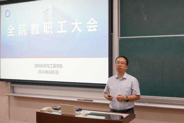 65日,材料科学与工程学院召开全院教职工大会。学院党政班子成员及全体教职工参加会议。材料学院党委书记袁媛主持会议。会议分为学院工作汇报和党纪学习教育案例集中学习两部分内容。
