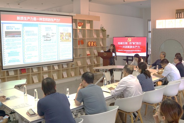 为深入学习贯彻习近平新时代中国特色社会主义思想和全国两会精神,深刻理解和把握发展新质生产力的内涵要义,促进知行转化,将理论学习成效转化为师生党员干事创业的强大动力,6月11日,材料科学与工程学院超细实验室党支部在徐汇校区图书馆明德书房组织“党建引领 向‘新’而行——共话新质生产力”主题党日观摩活动。超细实验室党支部成员、党支部对口联系领导、材料硕士第四党支部学生党员代表参加了活动。化工学院、体育学院、资产经营有限公司师生党支部书记代表观摩了此次活动。活动由超细实验室党支部副书记沈建华主持。