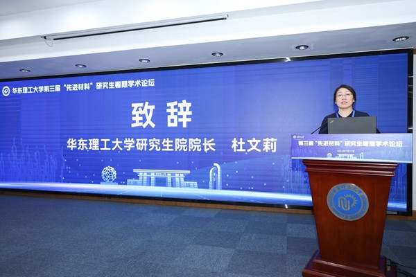 杜文莉在开幕式致辞中指出,新材料是新型工业化的重要支撑,是国家大力发展的战略性新兴产业之一,也是加快发展新质生产力、扎实推进高质量发展的重要产业方向。在举国上下大力推进新材料产业创新发展,加快形成新质生产力的大背景下,学校举办此次“先进材料”研究生暑期学术论坛,旨在汇聚名师思想,激发研究生创新活力,希望同学们把握与学术前沿对话的宝贵机会,就先进材料的基础研究和前沿技术与专家们进行深入的探讨和交流,有所收获,有所成长,为新材料产业发展贡献华理智慧。