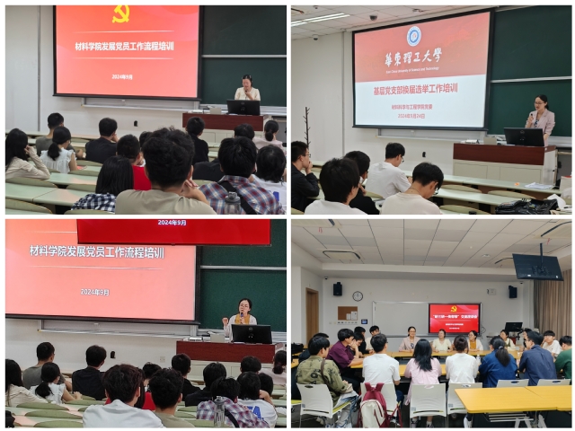 为进一步提升学生党建工作质量,规范发展党员和党支部换届等工作,9月24日,材料学院在奉贤校区教学楼B101举办学生党支部党务工作专题培训暨初级党校培训。材料学院专职组织员鲁宁宁、王安琪,2022级研究生党支部书记,2024级研究生党小组组长、党员和入党申请人参加会议。会议由研究生辅导员娄梦蝶主持。