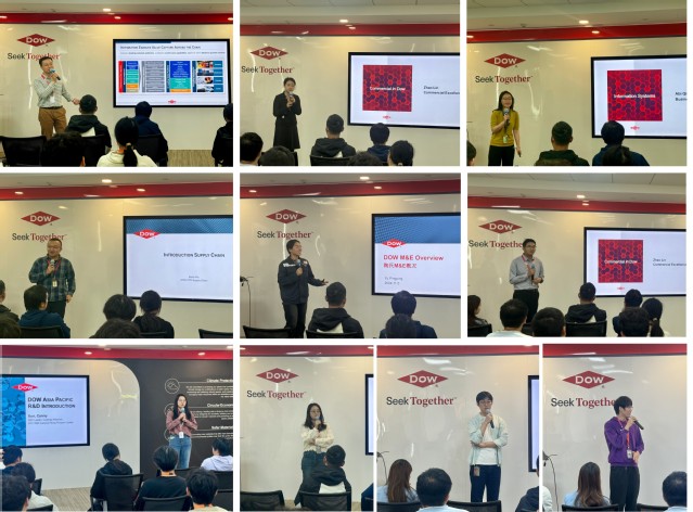 在对陶氏公司有了初步了解后,学生们回到会议室,进一步了解陶氏公司的运营机制。来自陶氏研发、商务、综合供应链、制造运营、信息技术五大部门的专家及华理校友们为学生们带来了各部门的职能介绍以及各自的职业经历分享,不仅让他们对公司的内部结构和运转机制有了基础认知,也激发了他们对自己未来职业道路的思考。