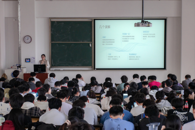 为强化学生对学业、就业等方面的认知,2024年11月13日,材料学院2022级在奉贤校区D200召开学业和职业规划动员大会。2022级辅导员王新林与学院就业指导陈新莲分别就学业和就业问题向同学们进行了宣讲。