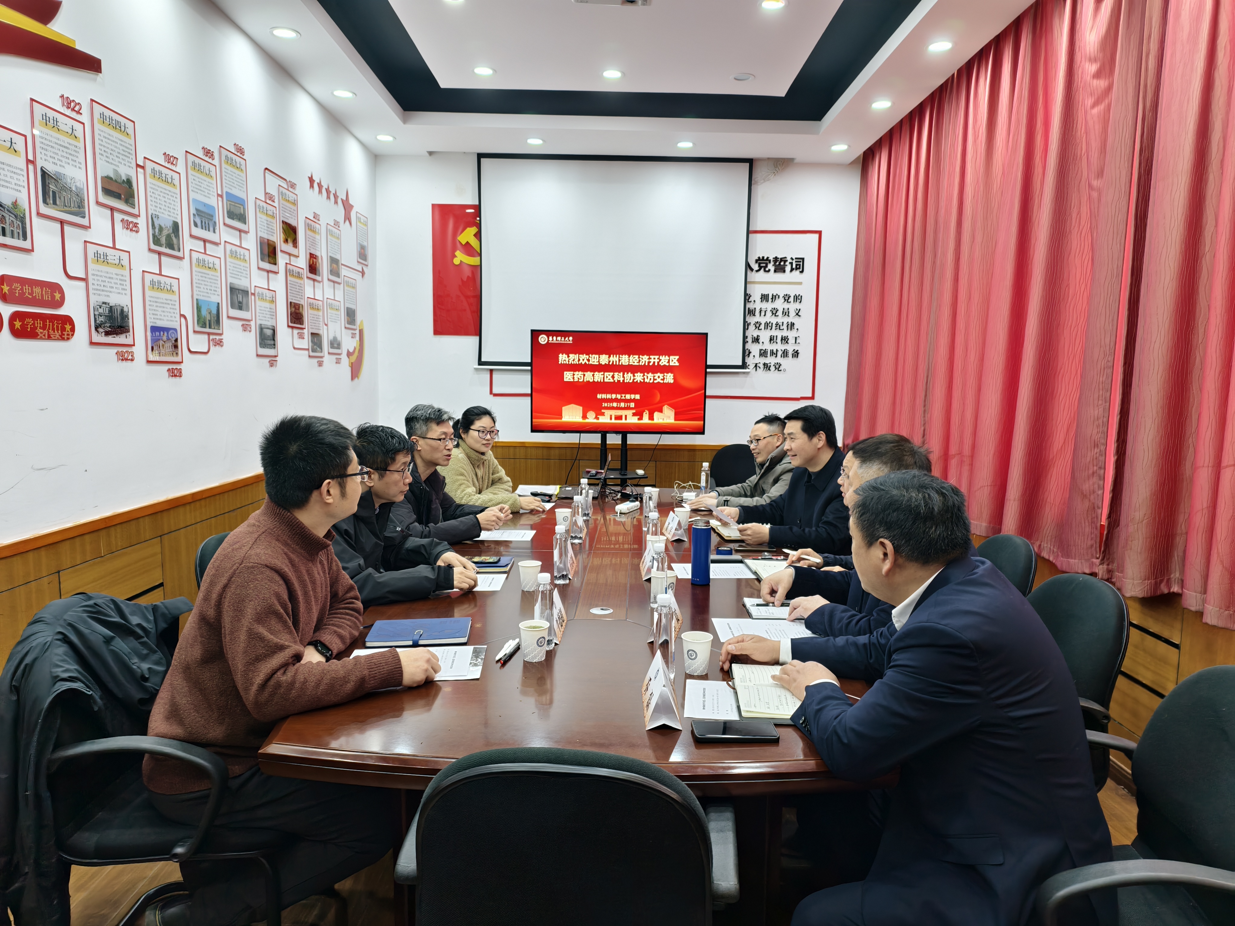 庄启昕从学校事业发展的角度介绍了学校未来布局和整体规划,围绕“两新两大”发展布局详细介绍了学校学院层面的工作重点及相关案例。戴诚安对泰州港经济开发区及医药高新区科协的来访表示热烈欢迎,希望双方能深入交流协作,促进师生互动,激发人才创新活力。牛德超介绍了学校及学院在学科和专业方面的基本情况以及未来学院的重点建设发展方向,希望谋求更深入广泛的校企合作,加快推动技术成果产业转化。