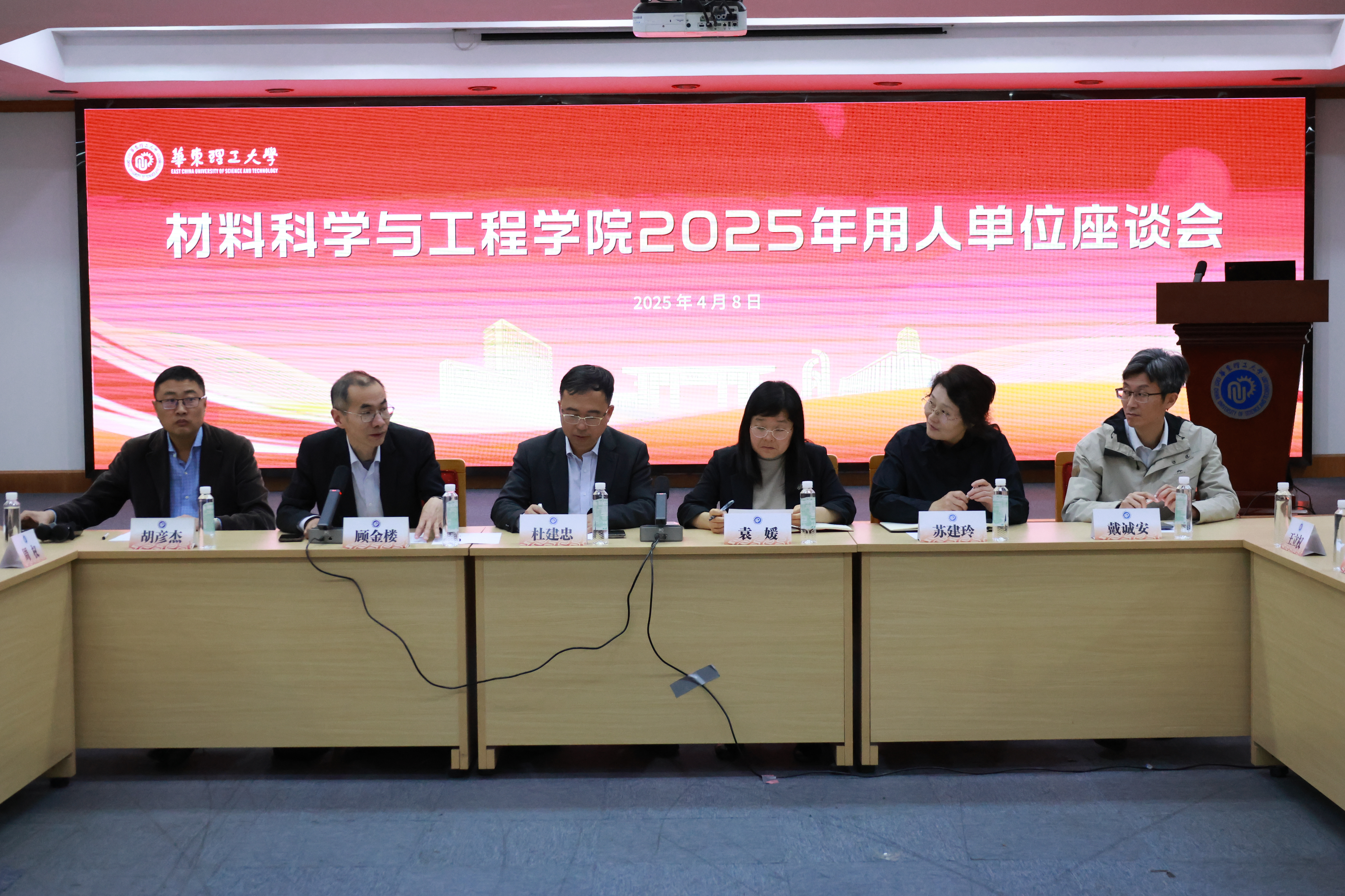 招聘会当日上午,材料学院在逸夫楼演讲厅同步召开2025年用人单位座谈会,与十余家企业代表围绕“材料学院人才培养与企业需求”展开深入交流,材料学院党委书记袁媛,院长杜建忠,党政领导班子成员苏建玲、戴诚安、顾金楼、胡彦杰,高分子材料系主任周权、副系主任王立权及教师代表出席会议。