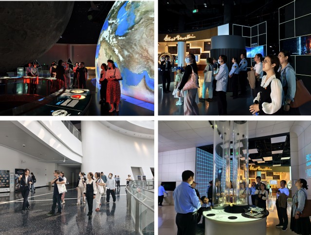 签约仪式后,在天文展教研究党支部党员带领讲解下,参加本次共建活动的党员一同参观了天文馆“家园”“宇宙”“征程”三大主题展区,展馆内触手可及的“天外”陨石、天文模型与互动装置,具有强烈的视觉冲击效果的球幕影院等,为大家带来了一场沉浸式的宇宙探索之旅,生动展示了天文科普的魅力与前沿科技成果。