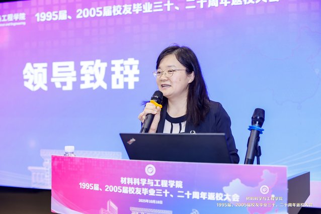在校友代表发言环节,复材910班,核工业第八研究所总工程师、副所长徐哲军围绕“感悟、感谢、祝福”三个关键词交流,由衷感谢母校的培养,他谈到,华理为行业输送了大量专业人才,结合自身工作实践,就材料学科发展如何顺应时代变革交流了见解。材911班,度亘核芯光电技术(苏州)股份有限公司总裁张艳春回顾了在华理的求学时光,高度认同学校注重学生全面发展的育人理念,结合个人职业成长经历,他指出材料领域创新空间广阔,呼吁广大校友将个人成长与学校学院发展紧密融合。高材014班,上海芳瑜新材料科技有限公司总经理韩晓波,结合屏幕上的两张合影,以“三个心愿”为主线,分享了重返母校的感悟与个人发展历程,他表示将始终铭记投身材料行业的初心,以踏实的心态做好每一件事。无材011班,上海大学教授杨光深情回忆了在华理的学习与科研岁月,他谈到,毕业后与校友合作倍感亲切,彼此间深厚的信任感正是母校所赋予的宝贵财富。